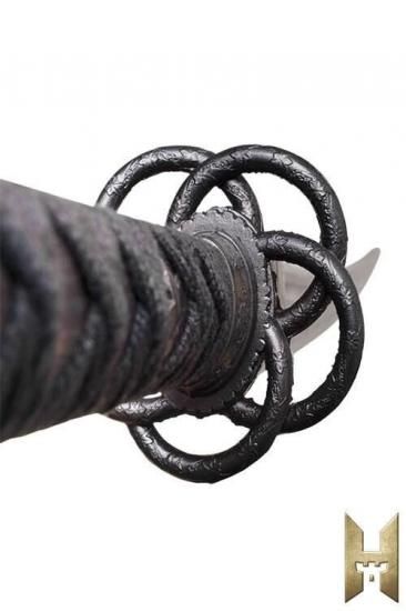 ハンドルには、本物の刀のスタイルを再現したテクスチャードラップを採用。小さな四角形のセグメントでクロスラッピングされたキャンバス素材が、確実なグリップと追加の快適性を提供します。この細部は、特に素手で使用したり、長時間使用する際にも、剣に地に足の着いた触覚的な感触を与えます。バランスは柄と刃の間に自然に配置され、Ryūganは動きに流暢さを感じさせつつ、満足感のある打撃を実現する適度な重量感を持っています。